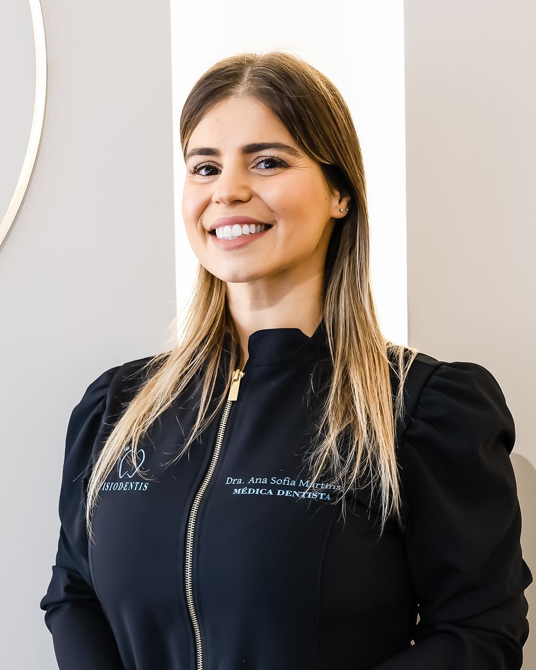Ana Sofia Martins, médica dentista com 16 anos de prática, especialista em devolver sorrisos e confiança aos seus pacientes.